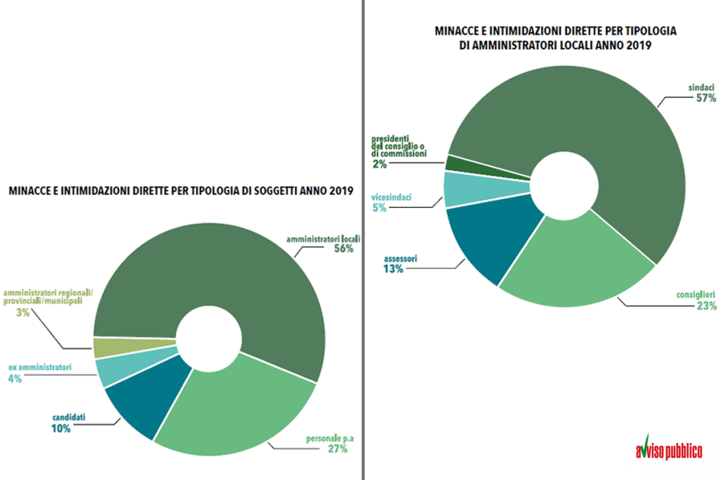 In Italia uomini e donne che per un estremo senso di responsabilità civile hanno deciso di dedicare parte della propria vita alla comunità che vivono sono sempre più sotto tiro. Sindaci, assessori, amministratori locali, consiglieri e chiunque svolga una funzione pubblica è sempre più esposto ad intimidazioni, violenze e minacce. A riportarlo è il report annuale dell’associazione “Avviso Pubblico” che da nove anni denuncia la crescente violenza fisica, psicologica e mediatica contro gli amministratori locali. Dal rapporto, pubblicato questa settimana, relativo al 2019 emerge un quadro destabilizzante che mette in luce come da nord a sud non esista regione dove la criminalità, sia essa organizzata o comune, non colpisca chi svolge il proprio compito con competenza, responsabilità e trasparenza. Minacce e violenze che mettono a rischio uno svolgimento pienamente democratico della funzione pubblica.